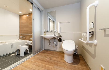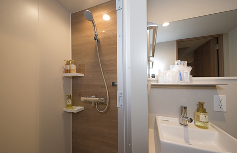 1階のアメニティコーナーではメイク落とし、化粧水、乳液などがご自由にお選びいただけます。