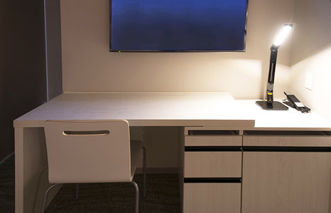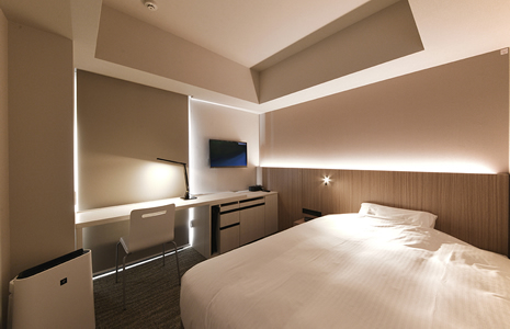 ロフテー社製の快眠ホテルピローを全室完備。頭と首に心地よくフィット。表裏に異なる素材を使用し、「やわらかめ」と「かため」をお選びいただけます。